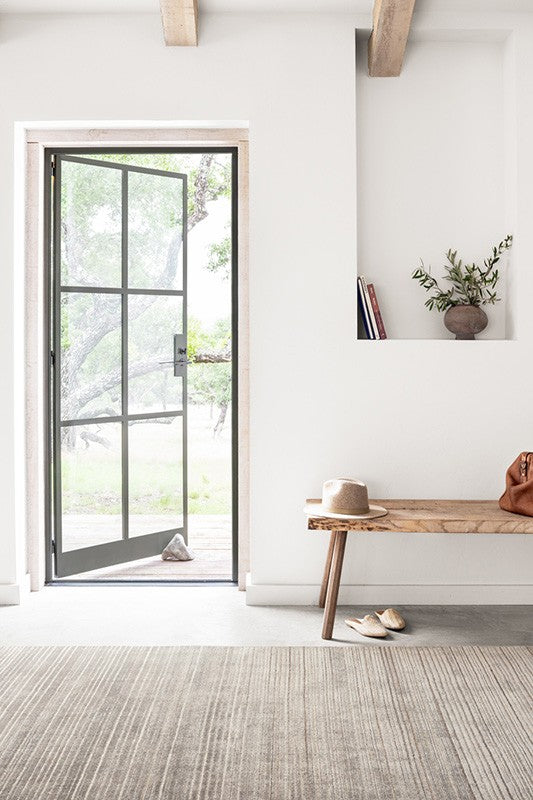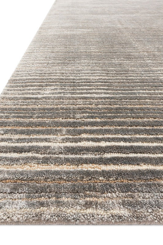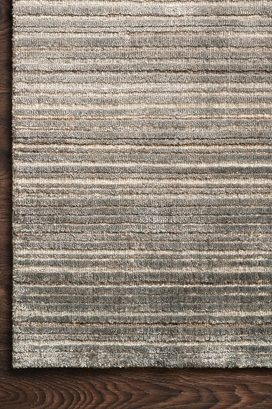 The Bellamy Collection is hand-loomed of rayon, wool, and Cupro by artisans in India. Create a dynamic space with Bellamy's silky textural design, the subtle dappling of tonal colors and an illusion of movement created with contrasting pile-height stripes.