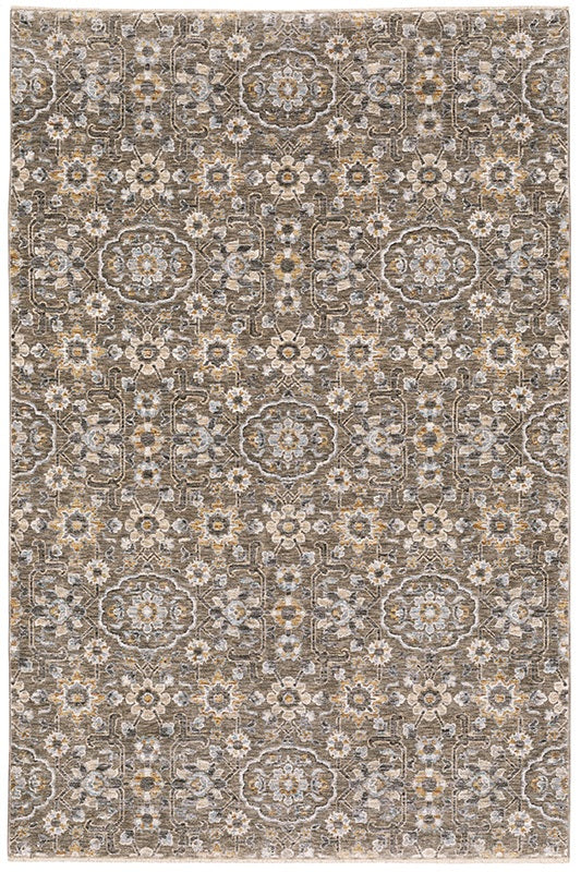 Maharaja is a study in understated elegance. This new million point collection is full of sophisticated traditional designs that have been re-imagined into a lovely new color palette. Timeless neutral tones alongside mellow shades of bluestone and muted amber offer subtle treatments for intricately detailed patterns. These beautiful rugs are powerloomed of incredibly soft, space-dyed polyester.
