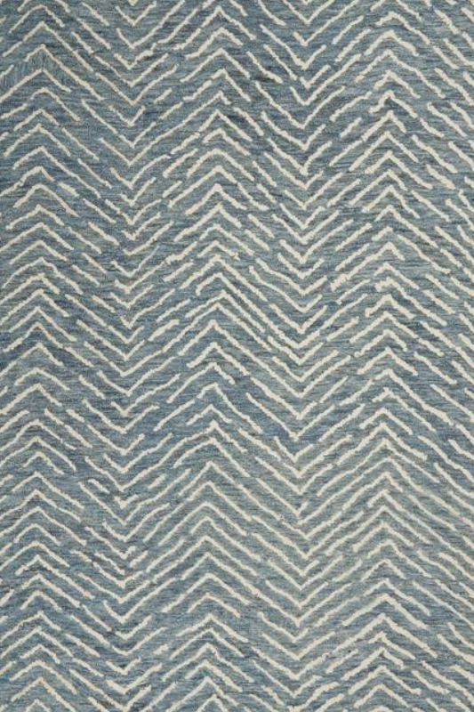 Rows of chevrons move like arrowheads across the textural surface of this free-spirited Colorado Collection area rug. Its artisanal, hand-tufted loop pile is irresistible to the touch. Enjoy the softness and durability of its easy-care, low-shed wool fibers in versatile indigo and ivory.
