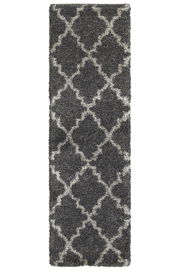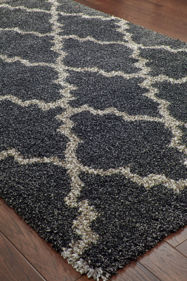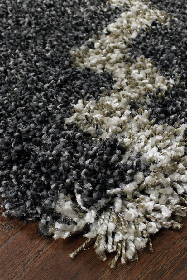 The Henderson shag collection features a luxurious hand in cool neutral shades of charcoal, gray and ivory. It showcases soft geometric motifs as well as abstract organic patterns and the lustrous yarns are barber-poled for enhanced visual texture.