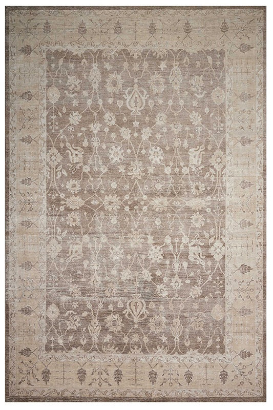 In a majestic color palette of ivory, chocolate brown and rose, a traditional bordered leaf and vine design truly shines. Woven from a lush bamboo extruded silk-like pile, this radiant rug, is remarkable to look at and wonderful to touch.