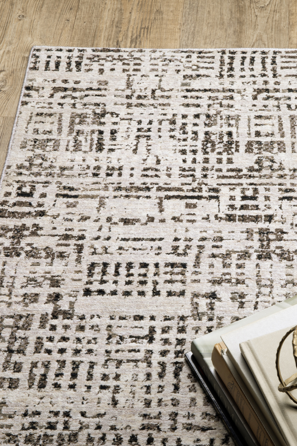 Nebulous is a dense, low profile, million-point collection that is power loomed of incredibly soft polyester yarns that are space dyed in a beautiful range of neutral shades from deep charcoal to soft ivory. Accent yarns of multi-level shrink polyester add surface interest to the modern abstract designs and tonal, textural patterns in the collection.