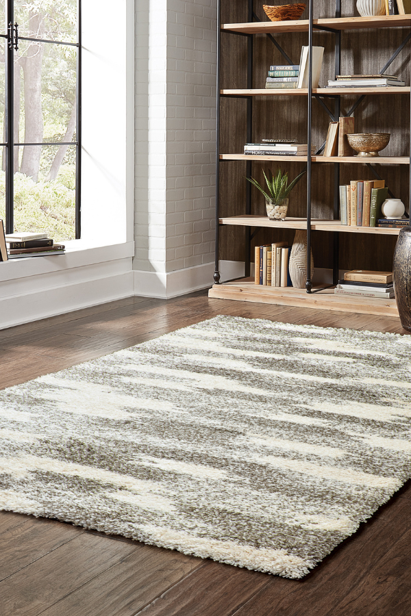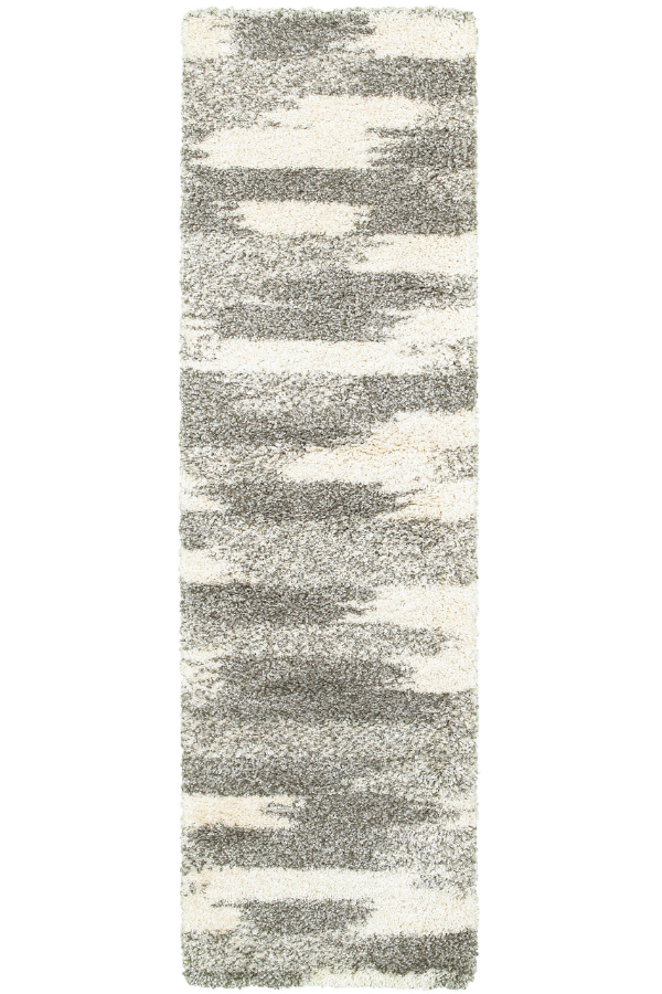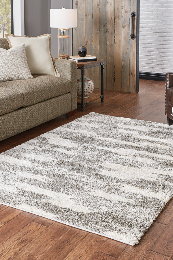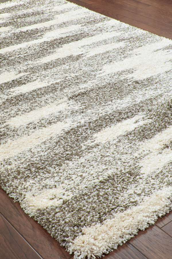 The Henderson shag collection features a luxurious hand in cool neutral shades of charcoal, gray and ivory. It showcases soft geometric motifs as well as abstract organic patterns and the lustrous yarns are barber-poled for enhanced visual texture.