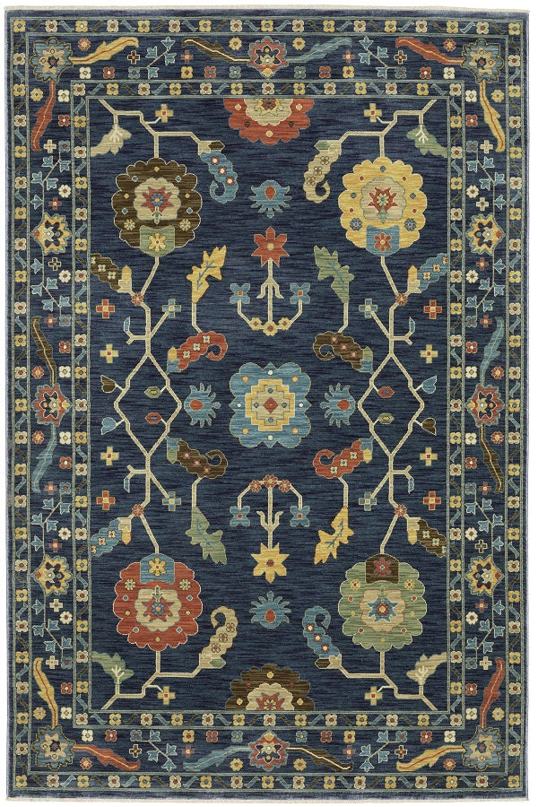 The Francesca collection features softened jewel tones of sapphire and turquoise, muted gold, and cinnabar alongside nature-inspired neutrals and an earthy brown and green. It is power-loomed of space dyed, super soft polylpropylene. Francesca showcases updated traditional patterns highlighting open fields, updated borders, and some folk-art flair.
