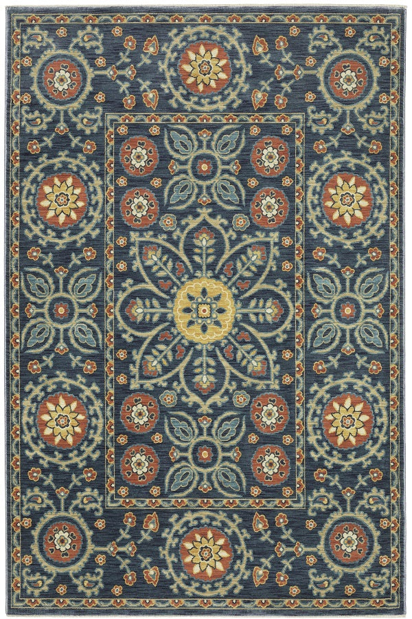 The Francesca collection features softened jewel tones of sapphire and turquoise, muted gold, and cinnabar alongside nature-inspired neutrals and an earthy brown and green. It is power-loomed of space dyed, super soft polylpropylene. Francesca showcases updated traditional patterns highlighting open fields, updated borders, and some folk-art flair.
