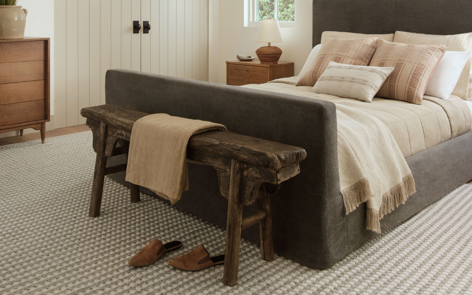 Shop RunnersBonus round! Many people forget that you can layer rugs of different sizes, either for more coverage of a space or to help a smaller, beloved rug fit a larger area. The standard setup works with a solid color on the bottom and adds color as the designer layers.