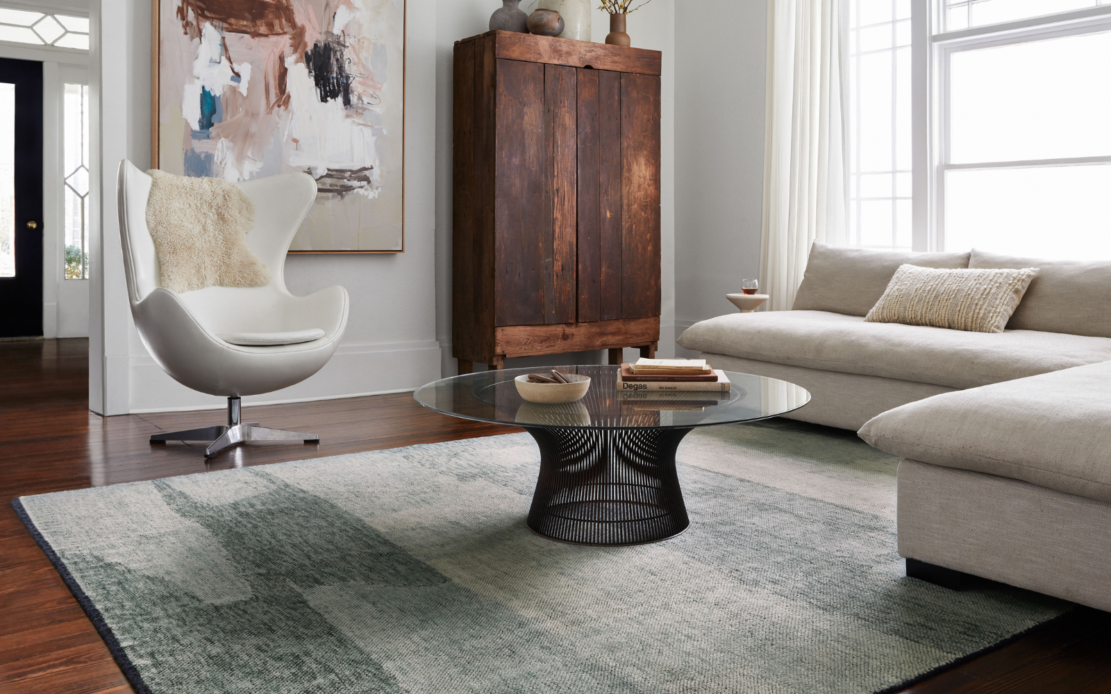 This guide presents examples of different design aesthetics and how designers use area rugs of all different sizes to work with furniture layouts. This is not a right or wrong kind of article; we'll provide you with basic examples that can be built on. Everything you see here is intended to be taken as recommendation, and a source of inspiration. If you find something you like, use it. You don't need a designer to make a space that is special to you!
