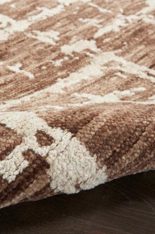 This hand-knotted Luna area rug brings you contemporary design with a flourish! Exciting linear patterns have a modern mosaic effect that will finish your decor with movement, texture, and balance. Beautifully handmade in a warm mocha-ivory palette, with subtle variations that make each rug unique.